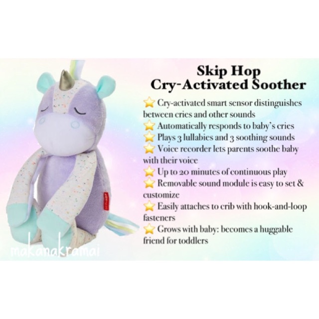 Shop the best Skip Hop Cry-Activated Baby Soother at Products for baby online store. Shop clothing accessories from a trusted name in kids toddlers and baby clothes. Soothe baby with sweet songs nature sounds and your recorded voiceeven in the middle of the night. This soft bedtime friend features an innovative cry-activated smart sensor that automatically responds to cries so baby and parents get a good nights sleep. ZAZU Suzy Portable Baby Soother Baby White Noise and Sound Machine 90 85. Special offers and product promotions. Shop clothing accessories from a trusted name in kids toddlers and baby clothes.