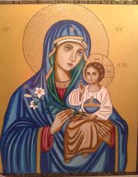 They usually show Mary holding the infant Jesus in an informal and maternal manner. Glorification of Mary ca1470.