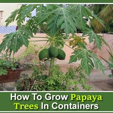 Commonly nursery papaya trees are grown in 1- to 3-gallon containers and trees stand 6 inches to 2 ft tall. Papaya tree from seed growing a beautiful papaya root system in a bed of sugar snap peas. E Upper view of the same root system showing horizontal distribution of secondary roots from publication.
