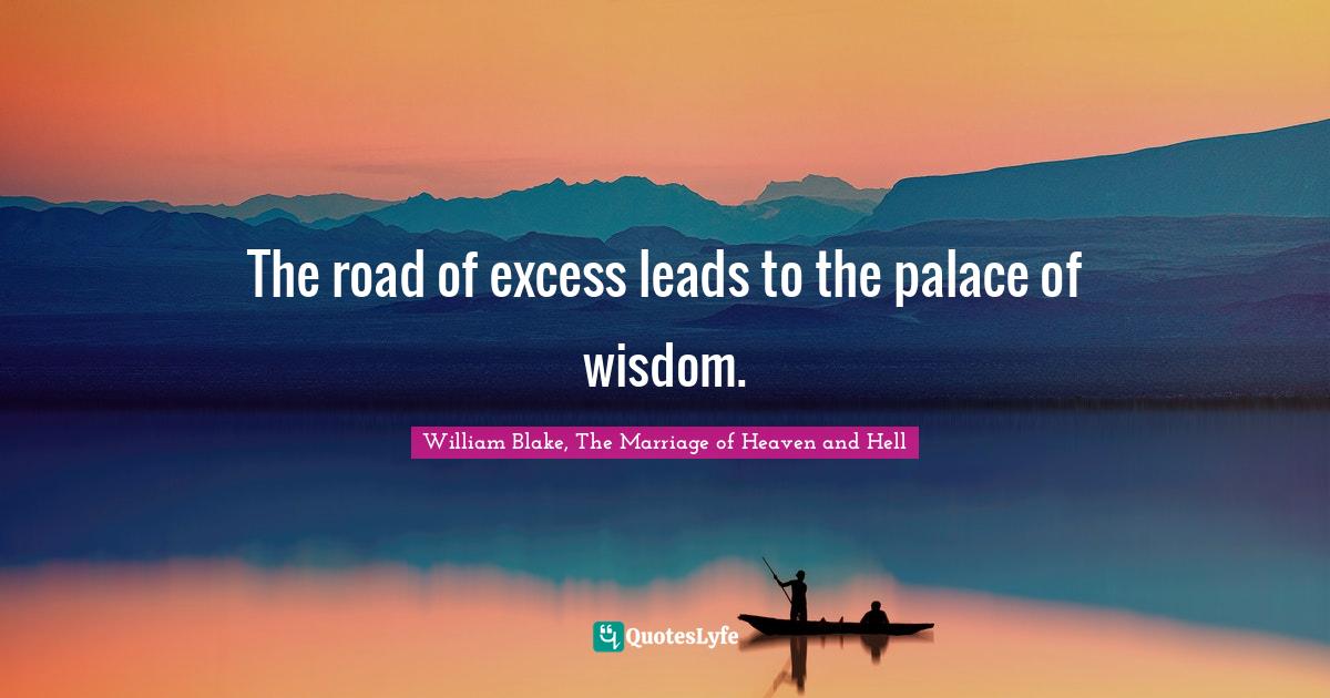 The road of excess leads to the palace of wisdom. Download or share this William Blake The Marriage of Heaven and Hell quote with your friends on facebook linkedin whatsapp twitter and on other social media. We get very little wisdom Theres no such thing as a waste of Champagne.