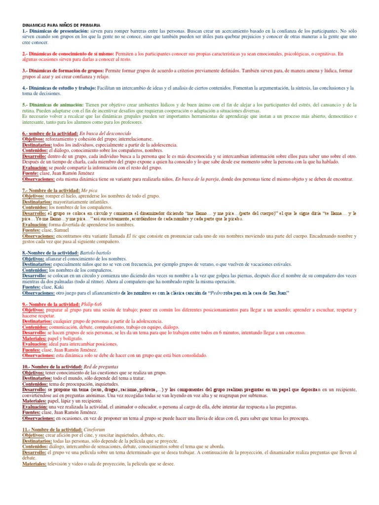 Dinamicas Para Niños De Primaria