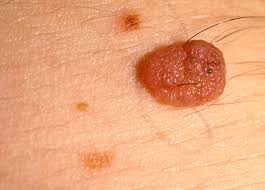 Son más comunes en hombres que en mujeres pueden aparecer repentinamente o tenerlas en la piel desde que se nace por lo general aparecen en la espalda cuello y tórax y en ocasiones raras en el rostro. En realidad no son algo peligroso y. Estos tumores usualmente se encuentran arriba de la cintura en zonas expuestas al sol.
