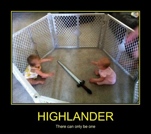 There can only be one baby meme. There can only be one. Only highlander there can be only one there can only be one. From Facebook tagged as Meme.